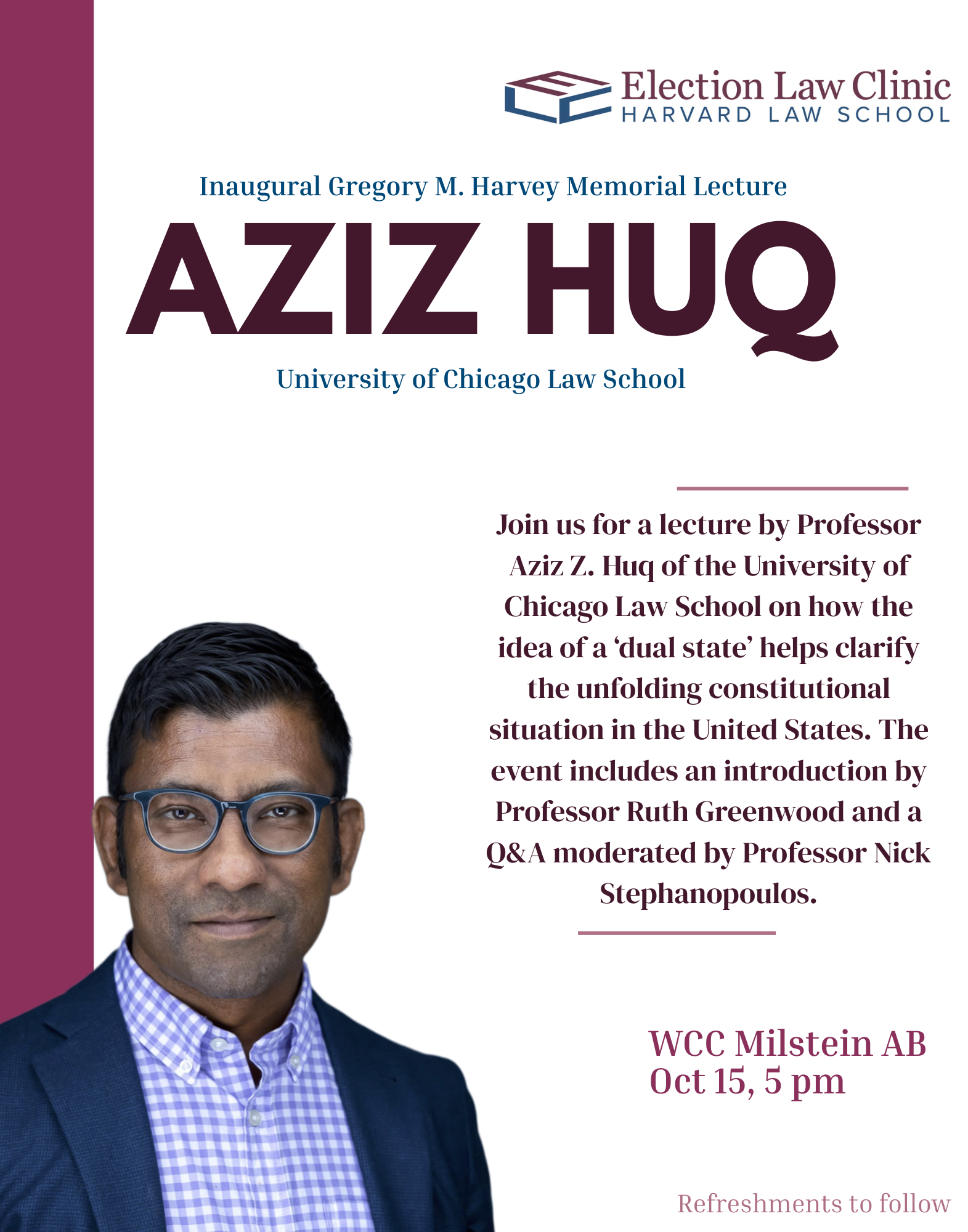 Join us for a lecture by Professor Aziz Z. Huq of the University of Chicago Law School on the evolution of executive authority, its risks to the rule of law, and the safeguards of constitutional governance. The event includes an introduction by Professor Ruth Greenwood and a Q&A moderated by Professor Nick Stephanopoulos. Register here.